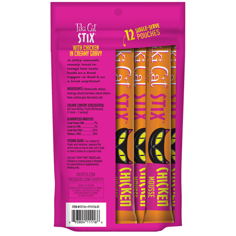 Encienda el motor del ronroneo de su gato con este premio lleno de sabor, elaborado con pollo verdadero y tierno en una mousse suave y sedosa.