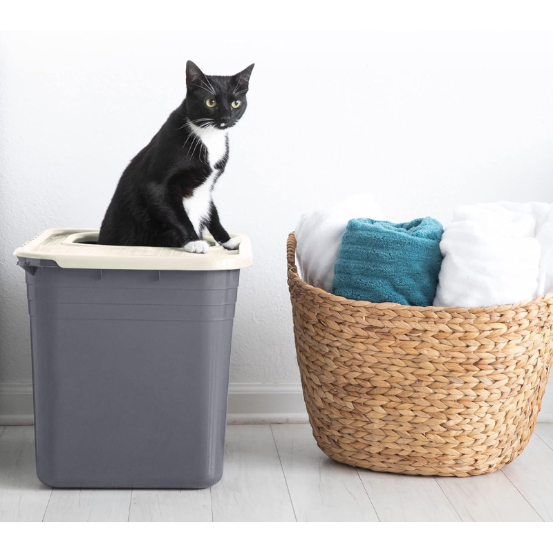 - La caja de arena con entrada superior proporciona a los gatos un lugar discreto para usar el baño.